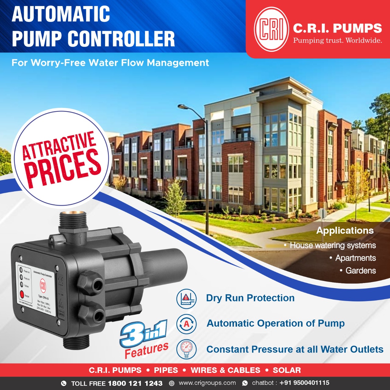 The pump controller unit equipped with inbuilt timer which helps to run the pump with real time run as well as scheduled time run, so it enhances the effective ... With an automatic pressure controller, you don't need to turn on your pressure booster or pressure pump every time you want to take a shower or wash the dishes. By opening a tap or sink, the electronic controller will automatically start the pump. It protects your water pump from damage with its built-in feature